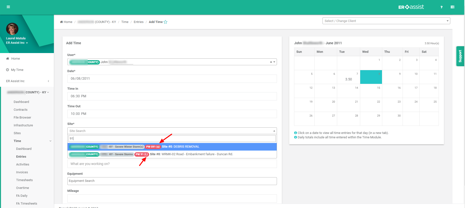 By request of project closeout specialists using the time tracking software, the L and s designation now appears in site drop down for time/equipment tracking.